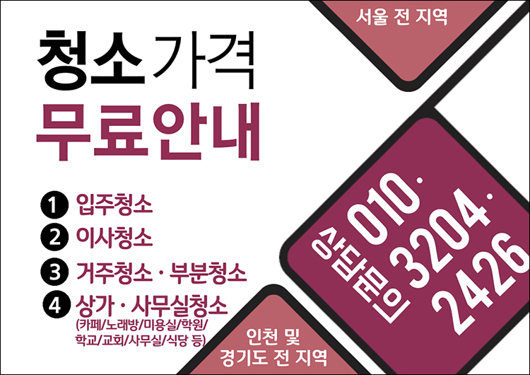 * 청소프로 청소상담예약전화 : 010-3204-2426 (대표전화) *